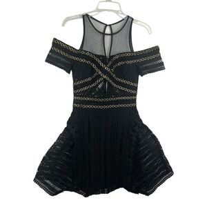 New-shop17 Lacy, Crochet, Studded, Mesh Neck Line Off Shoulder, Lined Mini Dress