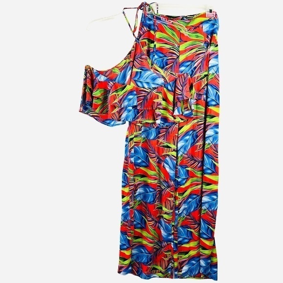 Brand New. Never worn. No Tags. This vibrant color tropical floral print pant set is great for a beach vacation. Look elegant, stylish, and playful. It is carefully crafted to ensure maximum comfort and style, making it an excellent addition to any wardrobe.