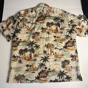 Newt Honolulu Hawaiian Shirt Mens XL Beige/ivory Hawaiian Life Print Cotton