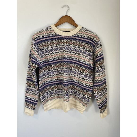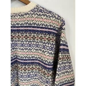 Newton Trading Co 100% Wool Shetland M North Isle Sweater Pink Blue EUC Warm Top
