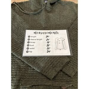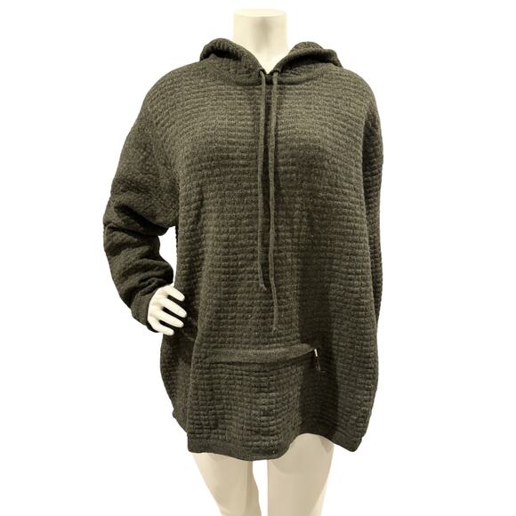 The Newton Trading Company Olive Green 2XL 100% Lambswool kangaroo zipper pouch is a stylish and cozy sweater perfect for the winter and fall seasons. Made with high-quality wool, this waffle-knit sweater features a hood and pockets, making it both fashionable and functional. The unique kangaroo zipper pouch adds a touch of whimsy to this pullover, while the outdoor theme gives it a rugged feel. Designed for women in a plus size, this sweater is a versatile addition to any wardrobe, ideal for keeping warm and on-trend during the colder months.