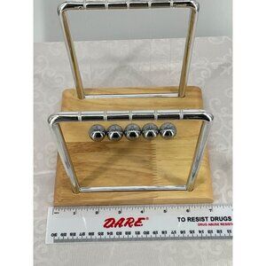 Newtons Cradle Desk Toy With Chrome Frame & Wooden Base