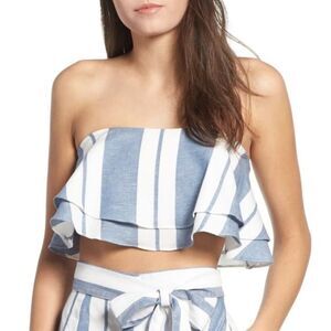 Details via Nordstrom (SOLD OUT) Tiered ruffles and crisp stripes make this bandeau top a standout retro style.