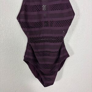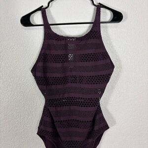 New without tags Bleu Rod Beattie Purple Cutout Striped One Piece Swimsuit 12
