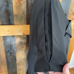 New with tags Line and Dot black mini dolman style dress with silk accents, sz M. Great for a any event, this black mini has a contrast silk detail at the front and a deep pleat in back, pleat on the short sleeves.