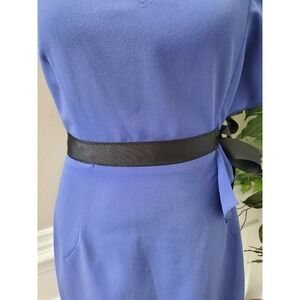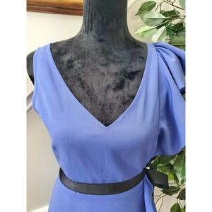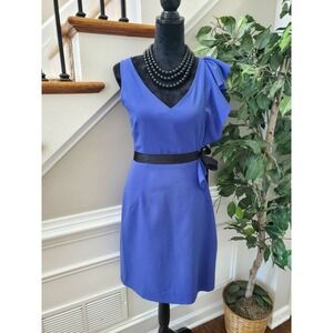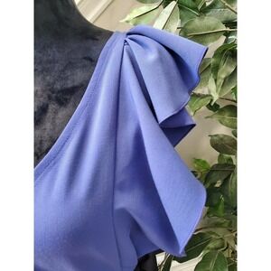 Newyork Co. Women's Solid Blue Polyester V-Neck Sleeveless Knee Length Dress 6