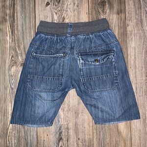 Next is a UK brand. Soft denim pull-on shorts with a tie waist. Size: 10 year-please see size chart Waist: 25 1/4”, hips: 30”, legs: 24 1/2”