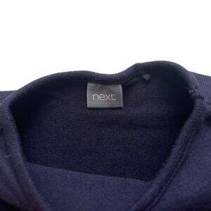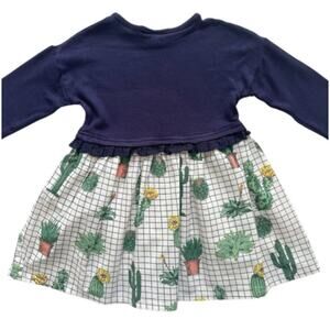 Next cactus dress. Navy sweater on top. Super soft! Eyelet lace ruffle at the waist. Size 1 1/2-2y. Viscose blend.