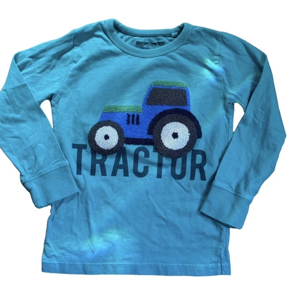 Next Brand. Size is 3/4 years. Tractor long sleeve top. Raised embroidered tractor on front of green top. Good condition for light wear and wash.