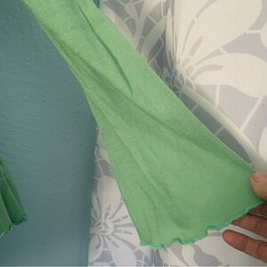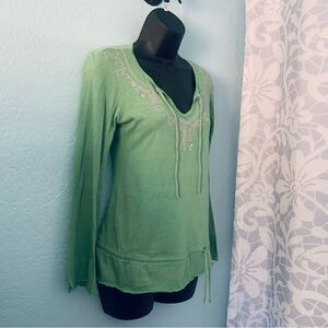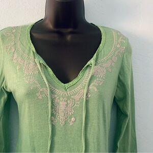 Next Era Mint Green Boho Embroidered Long Bell Sleeve Top Size Small