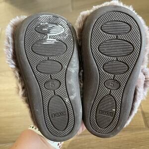 Next fuzzy slippers size 5 UK (6 US). Rudolph reindeer fuzzy slippers with sparkly gold horns and Velcro closure. Perfect for Christmas! Very good condition overall - please see photo of bottoms which has paint.