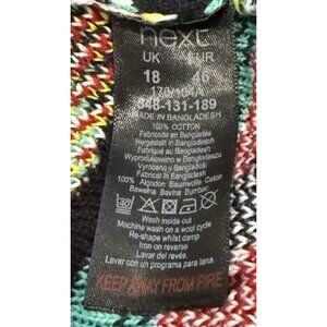 The Next Knitwear Holiday Winter Christmas Mini Dress Long Top is a festive and cozy sweater perfect for the winter season. This multicolor dress features a round neckline, long sleeves, and a pullover closure. The graphic accents of Santa and snowmen add a touch of holiday cheer, making it ideal for travel, parties, or casual wear. Made of cotton knit fabric, this US size 14 UK size 18 dress is machine washable and easy to care for. Celebrate the Christmas and holiday season in style with this adorable and comfortable sweater from Next Knitwear.