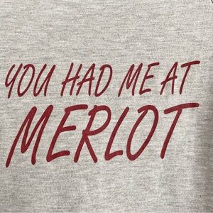 Casual and soft gray long sleeve shirt featuring red text 'You Had Me At Merlot'.