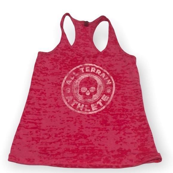 Front design has Skull and says”All terrain Athlete” in white