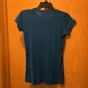Next Level Apparel slim fit girly tee with longer length. Teal blue. Crew neck. 100% Cotton