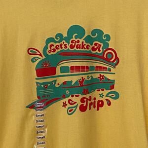 Next Level Apparel Woman's Size Small Yellow Lets Take A Trip Short Sleeve Shirt