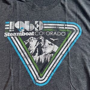 Next Level Graphic Tee Shirt, Print "Steamboat Springs" , M, EUC, Charcoal. Measures: 20" arm pit to arm pit and 28" length. Cotton/Polyester