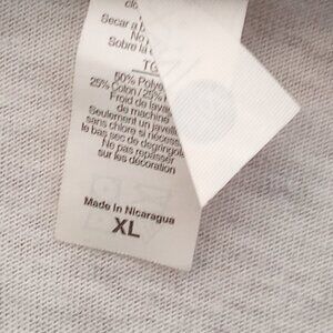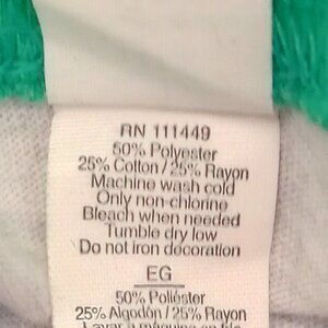 Preowned. Gently used. 50% Polyester. 25% Cotton. 25% Rayon. Lightweight. Stretchy. Slight piling.