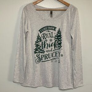 Next Level Light Grey Christmas Tree Graphic Long Sleeve Shirt Size XL