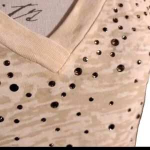Next Level V-Neck Rhinestone Embellished Top in beautiful buttery yellow burnout fabric with Amber rhinestones NWOT