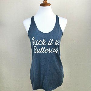 Next Level Women's Medium "Suck It Up Buttercup" Racerback Tank in Indigo/White
