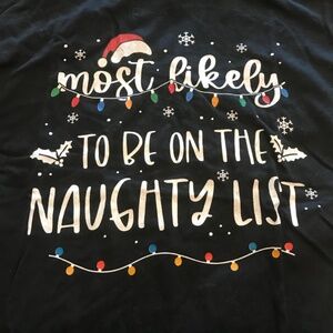Next Level holiday “Most likely to be on the naughty list” black tee shirt (M)