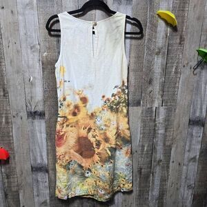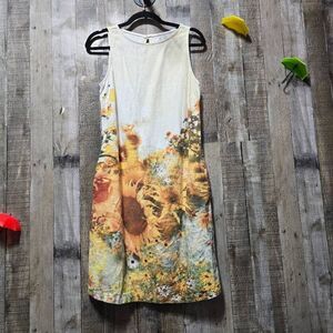 Next Linen Blend Summer Shift dress Floral Sunflow print Size 8