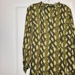 Next OLIVE GREEN Snakeskin PRINT A-LINE LONG SLEEVE DRESS SIZE 14 UK Size 10 US