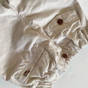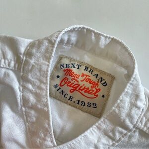 White Short sleeve Button up Linen blend And Khaki Pants A couple light spots Roll cuff Buttons for suspenders #next #outfit #bundle #linen