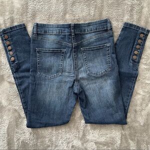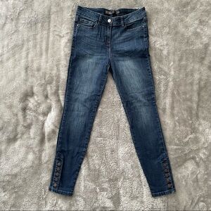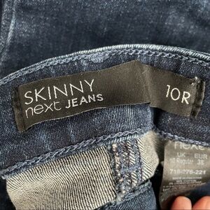 Next Skinny Medium Wash Distressed Jeans Button Detail at Hem. Size 10R