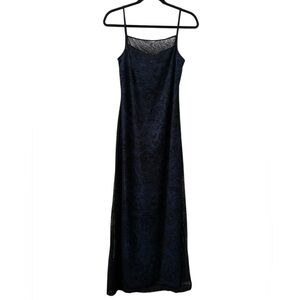 Vintage 90’s Maxi Dress 🦋 Very cute vintage Next Up dark blue and black intricate paisley floral design all over slight glitter effect square neckline.