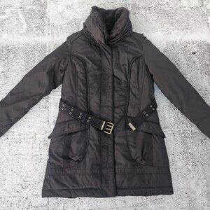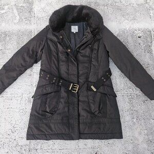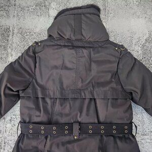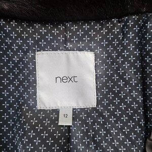 Next Women Jacket Winter Warm Long Coat Faux Fur Collared W Belt Size 12UK