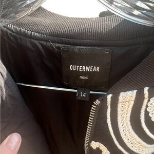 Clean and smoke free home. Next outerwear black and white embroidered bomber jacket. Women’s UK 14/US 10. In excellent preowned condition. Beautiful well made jacket. 21” armpit to armpit and 25” long. Fast shipping. All reasonable offers accepted. Wearable art artsy