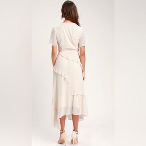 Next to You cream Swiss Dot Ruffled Midi Dress