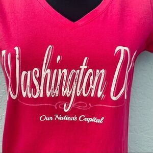 Cute hot pink v-neck “Washington DC” graphic T-shirt. 100% Cotton fabric. NWOT. Never worn. Next Level Size Medium