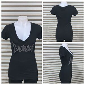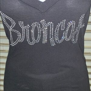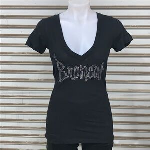 Next Level black short sleeve t-shirt with rhinestone Broncos
