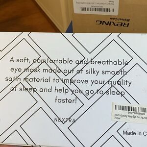 Nextra Luxury Sleep Eye Mask & ear plugs. Great for naps and/or travel. New in box. Smoke free & Pet free home. See ALL photos for complete description/details.