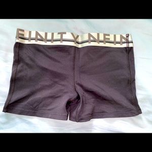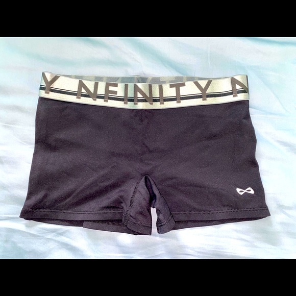 Size Small Nfinity spandex shorts with silver logo waistband. Excellent condition!