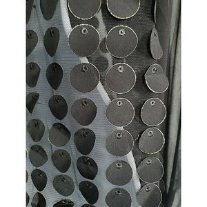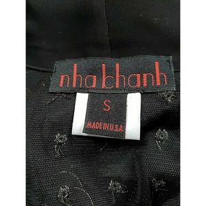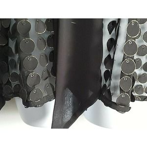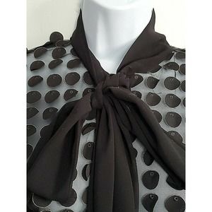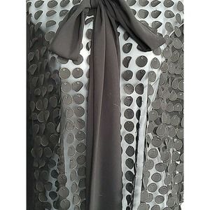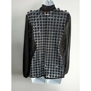 Nha Bhanh Sheer Small Button Down Black Shirt Circles w/Gold Trim Pussy Bow