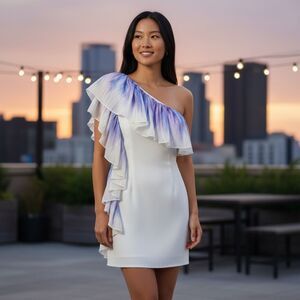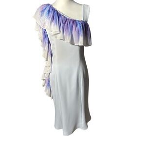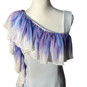 Nha Bhanh Stunning One Shoulder Ruffled Blue Lilac Dress Sz 8