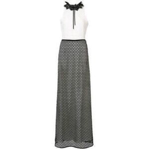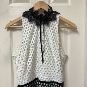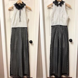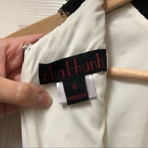 Beautiful Nha Khanh gown. Very substantial fabric—outermost layer is a mesh-look embroidery, and underneath are two liners—one full length and one short for extra coverage. Lace collar gives the look of a mock neck, with sweet thin velvet ribbon around neck and waist. Such a unique and beautifully modern gown, perfect for any formal event this season!