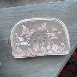 DIOR New in box Limited Edition Beauty Pouch, Cream & Gold Embroidered Butterflies and Dragonflies.