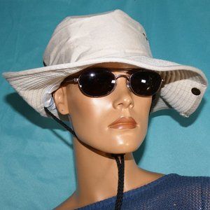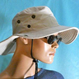 New in Bag. Wide brim with adjustable chin strap. Great for beach, garden, fishing, boating or if you are lucky enough, safari.