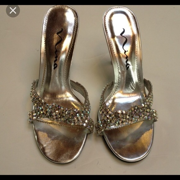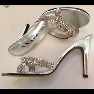 Gorgeous new Nina rhinestone silver heels. Purchased at Macy's. Never worn. Size 8 1/2 The rhinestones are so beautiful on these shoes. I tried to capture but so beautiful in person. Low 4 in heel. Perfect for any special occasion.#holidaypartys #newyears