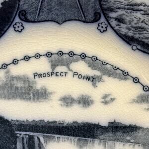 Niagara Falls souvenir plate vintage ceramic porcelain rolled rim flow blue FLAW