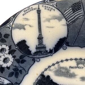 Niagara Falls souvenir plate vintage ceramic porcelain rolled rim flow blue FLAW