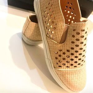 Brand new in box, faux leather, laser cut, slip on sneakers in blush. These cute, non-skid shoes are perfect for summer and will look great when worn with shorts, capris or a cool summer dress. These run extremely small, so even though the shoes and box are marked size 7, they run more like a size 6, which is how I have them listed.