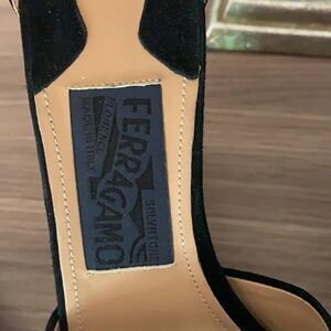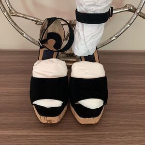 Gorgeous Salvatore Ferragamo cork and acrylic wedges suede sandals in size 37. New in box. These shoes Look amazing on your feet. Adjustable ankle strap is boggle closure. Platform wedge Heels are 4.5’. Very comfortable. Made in Italy.