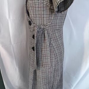 Nic & Jo Black & White Plaid Tie Side Wrap Bodycon Dress Button Detail Sz Small