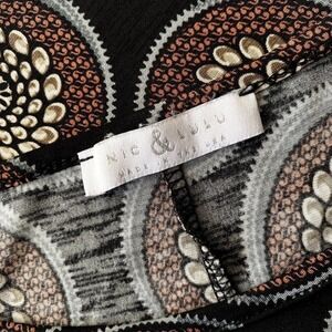Nic & Lulu Women’s MEDIUM Top Blouse Bell Sleeves Black Geometric Poly Stretch